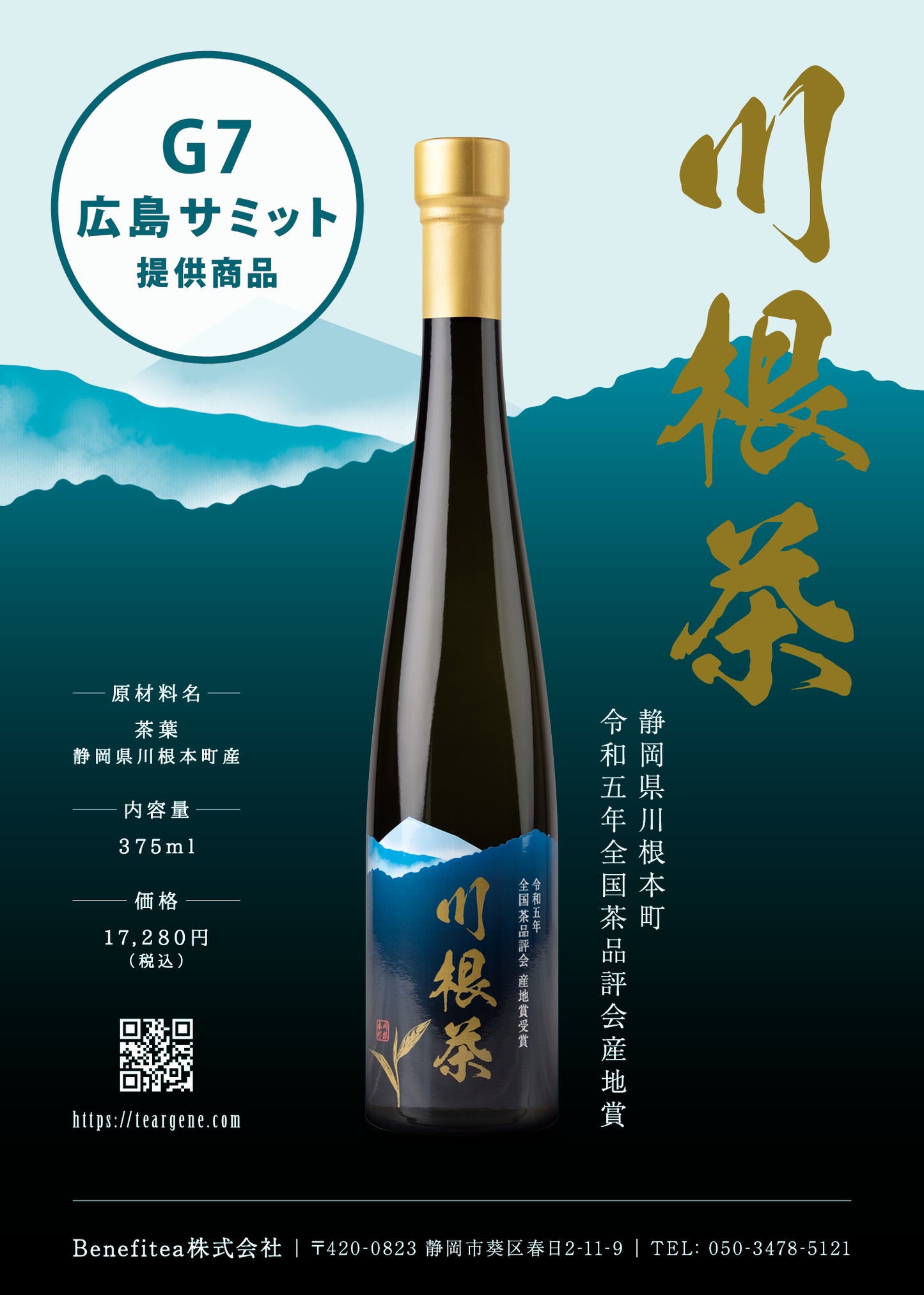 本商品「ボトルドティー 川根茶」は、G7広島サミットにおける "食のおもてなし" の一品として提供された特別なボトルドティーです。